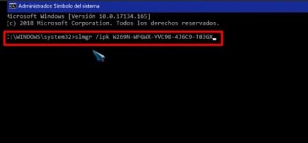 - Copia el código de activación que se adapte a tu sistema operativo y pega en el lugar de los asteriscos
