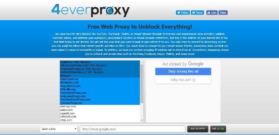4everproxy es un sitio de navegación anónima que se caracteriza por ser eficiente y rápido a la hora de usarse en un navegador. Este portal proxy cuenta con muchos servidores web en múltiples países para así ocultar tu dirección IP.
