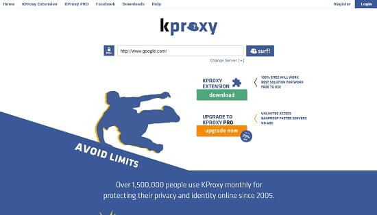 KProxy destaca porque además de ofrecer un servicio directamente en tu navegador posee también una extensión para Chrome o Firefox y una versión portátil de Firefox que ya viene con la extensión ya instalada; lo que es muy conveniente ya que te deja utilizar el proxy en cualquier PC de tu escuela, universidad o en el trabajo.